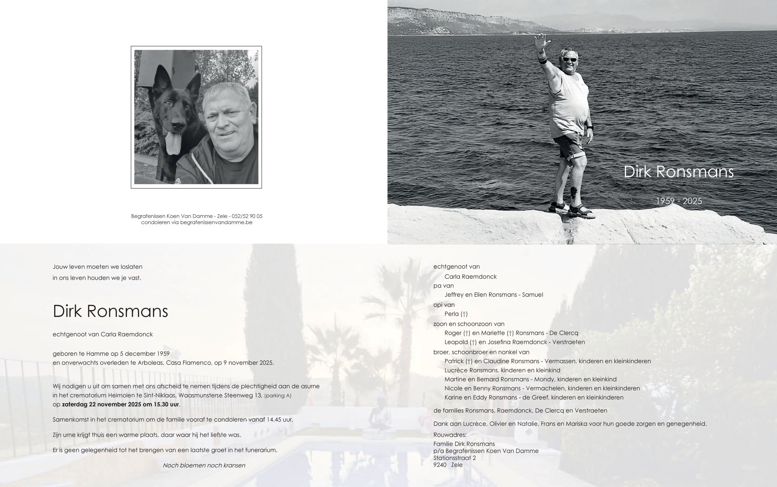 Samenkomst: In het crematorium om de familie vooraf te condoleren vanaf 14.45 uur